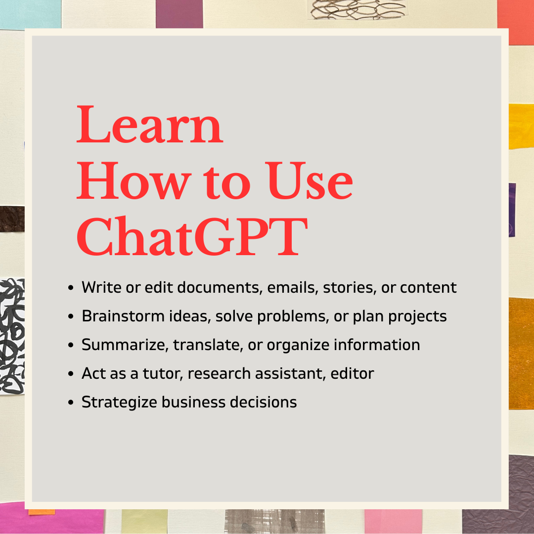 Your “Learn How to Use ChatGPT” course subscription includes self-paced lessons and optional weekly Zoom office hours. Ask questions and learn from others. If you’re unable to attend meetings live, email your questions to me in advance and listen to the recording. It will be emailed to you the day following the Zoom.